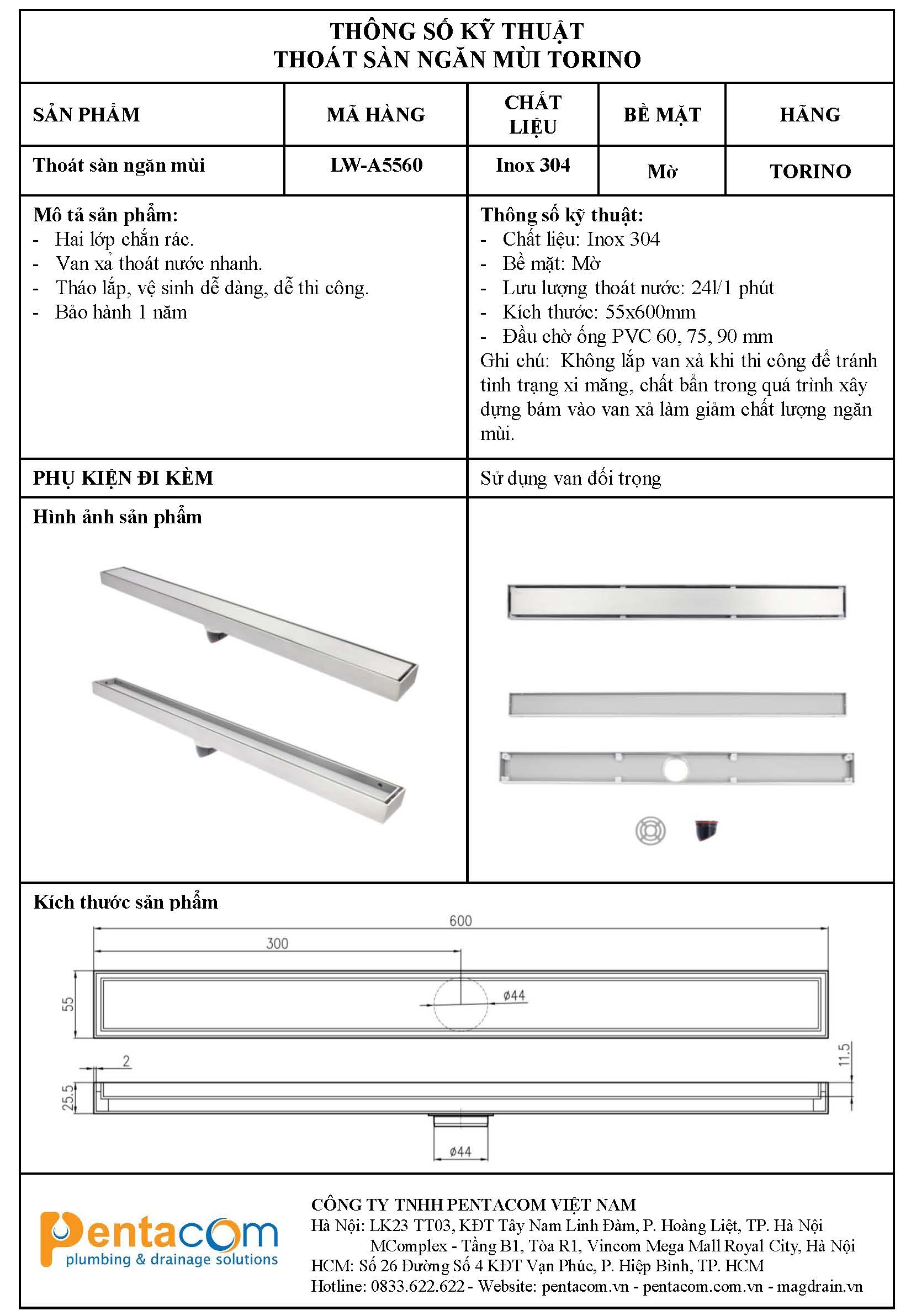 - Link tải Thông số kỹ thuật thoát sàn Torino