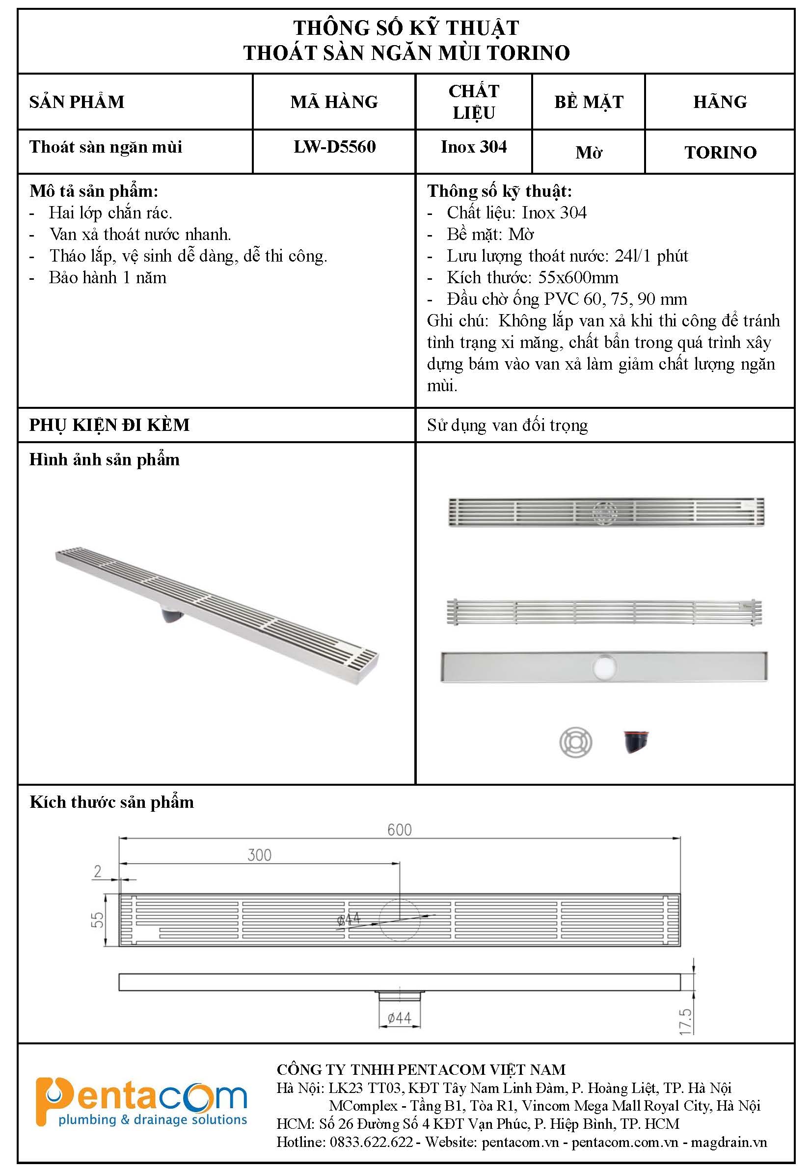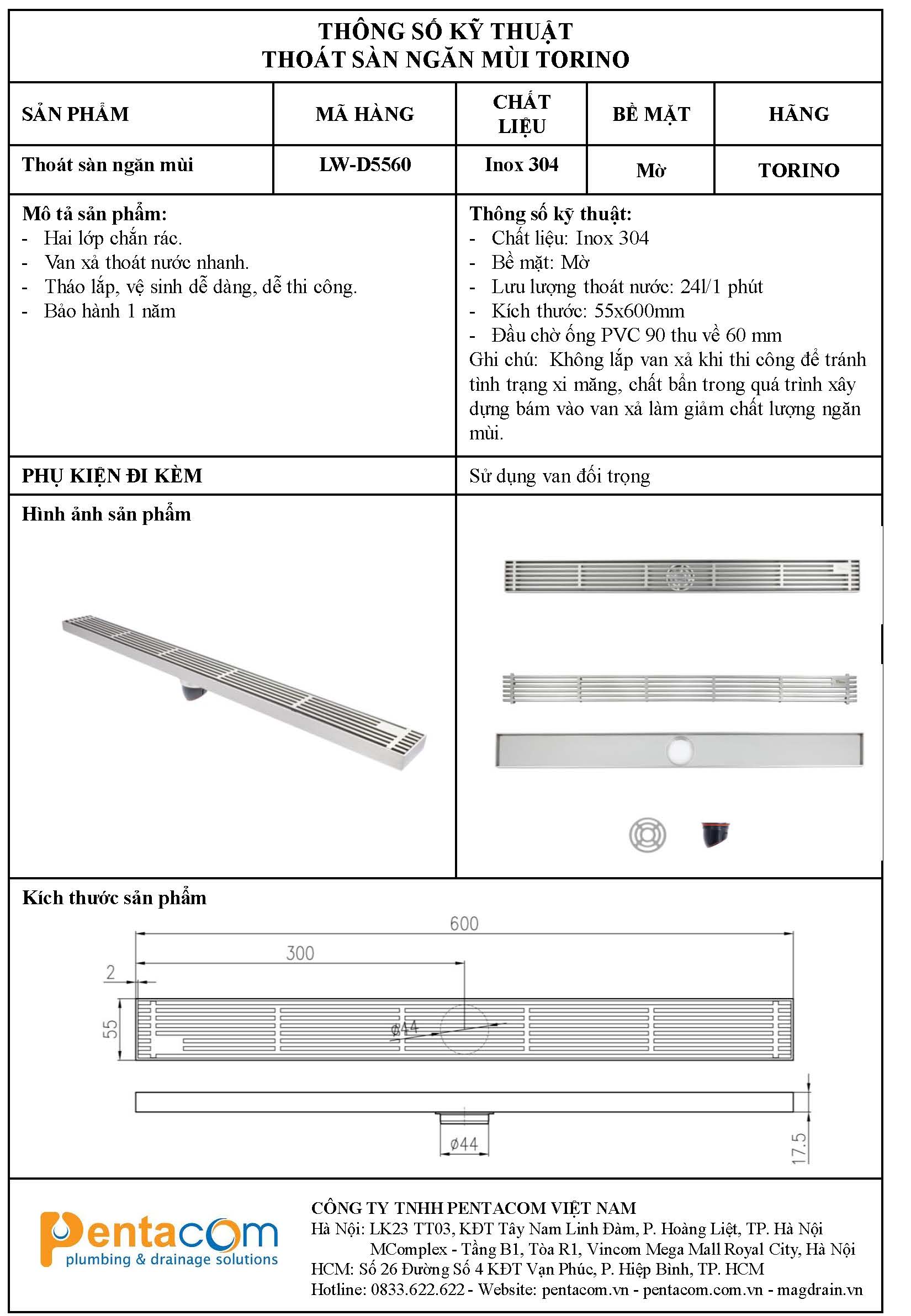 - Link tải Thông số kỹ thuật thoát sàn Torino