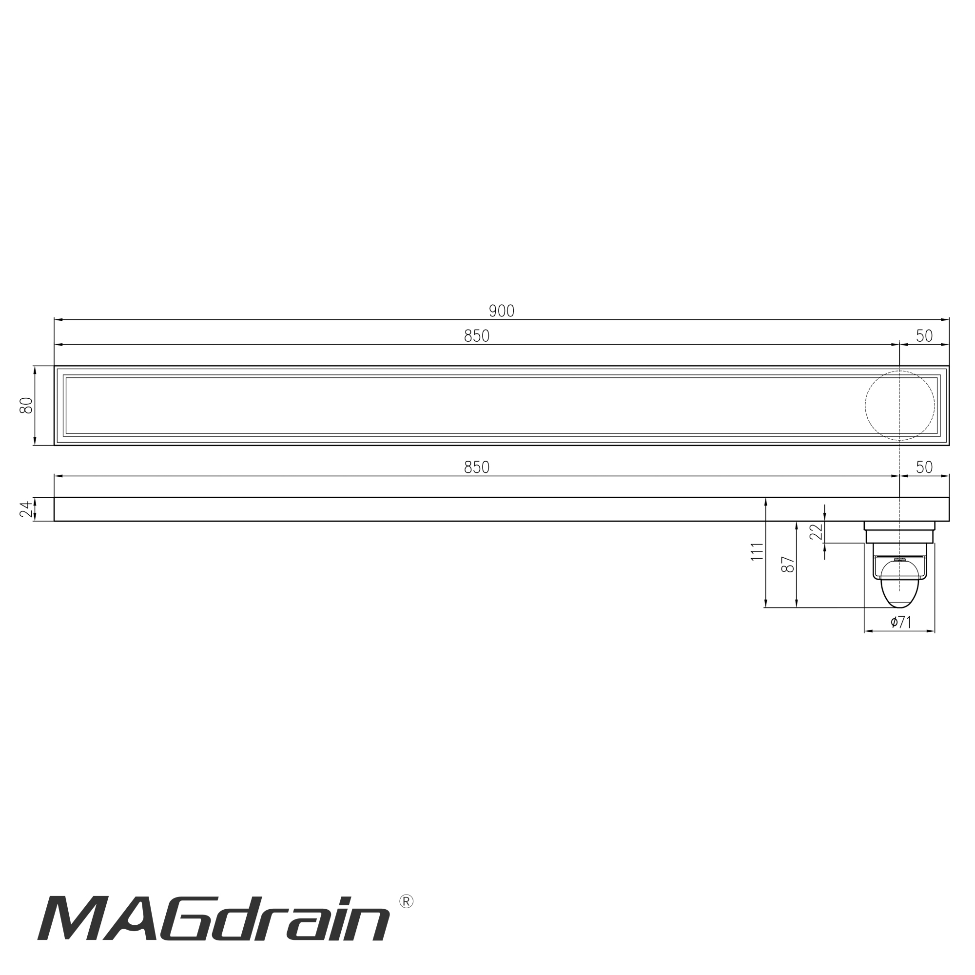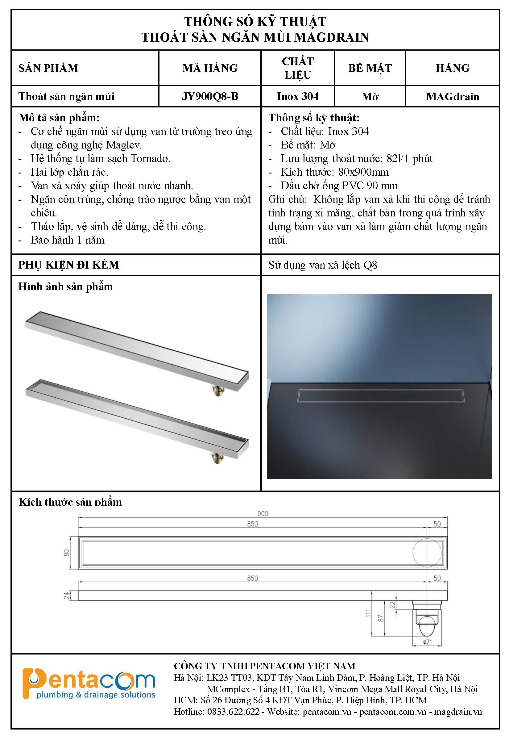 Ga thoát sàn ngăn mùi MAGdrain JY900Q8-B van lệch góc