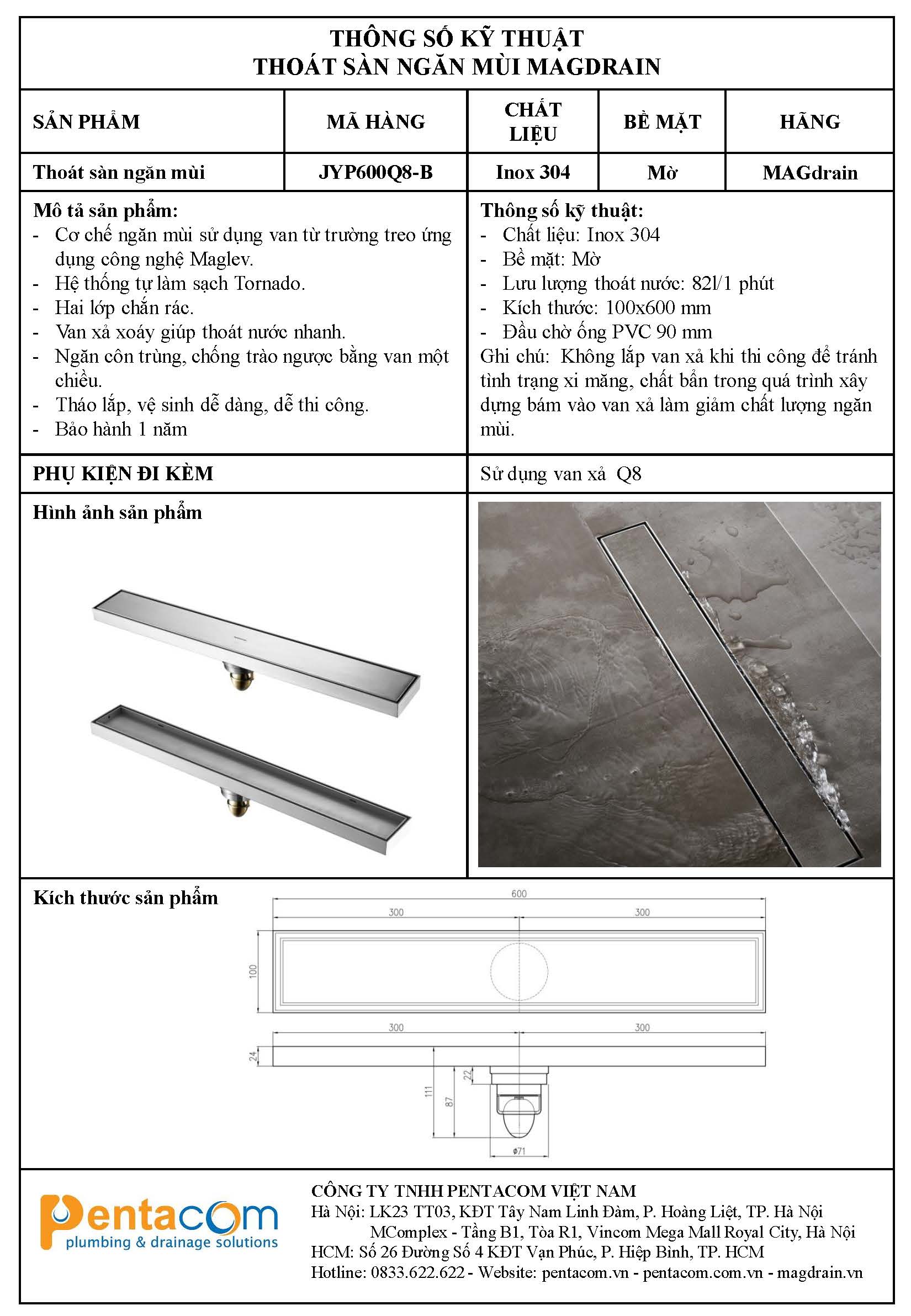 Ga thoát sàn ngăn mùi MAGdrain JYP600Q8-B
