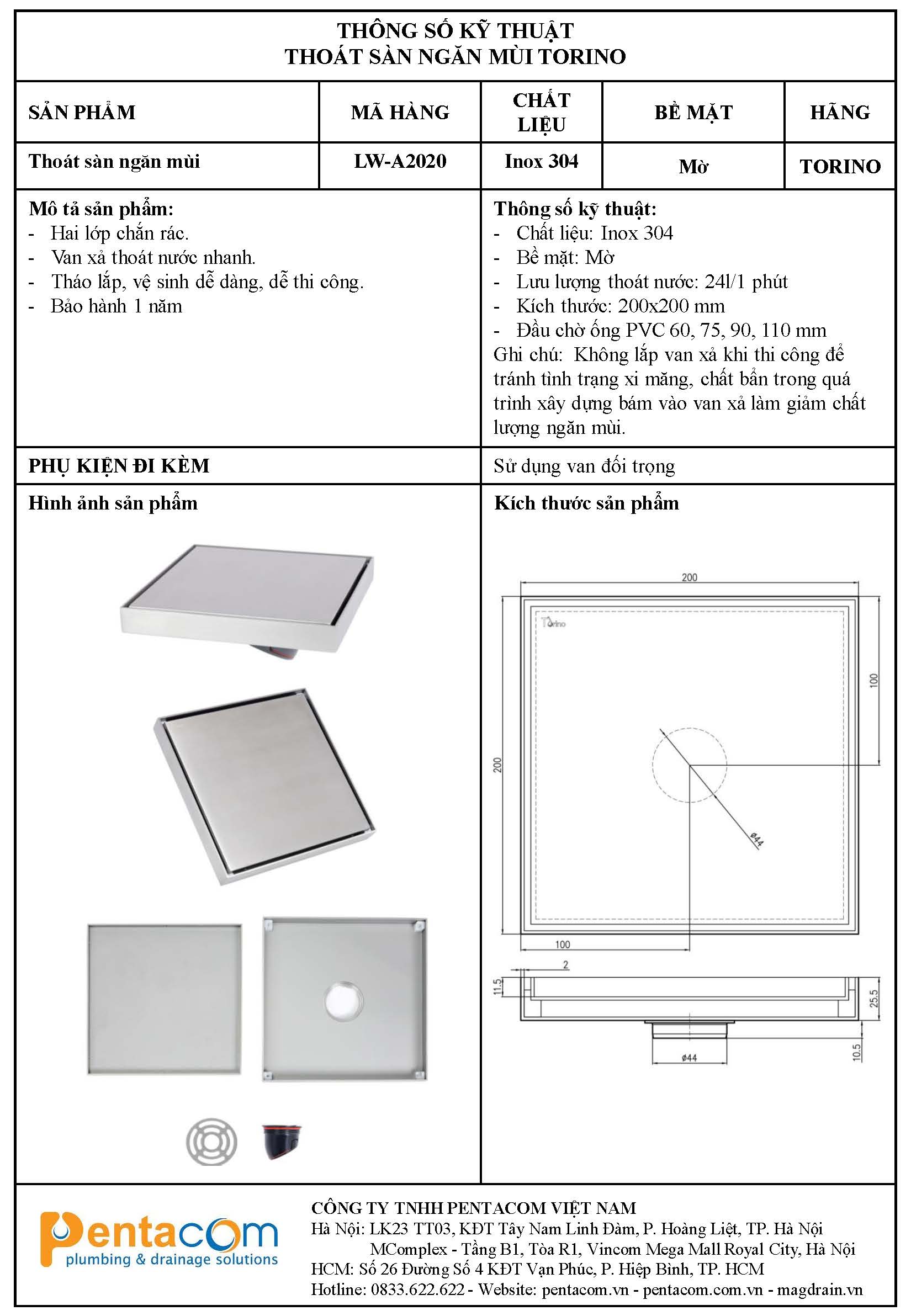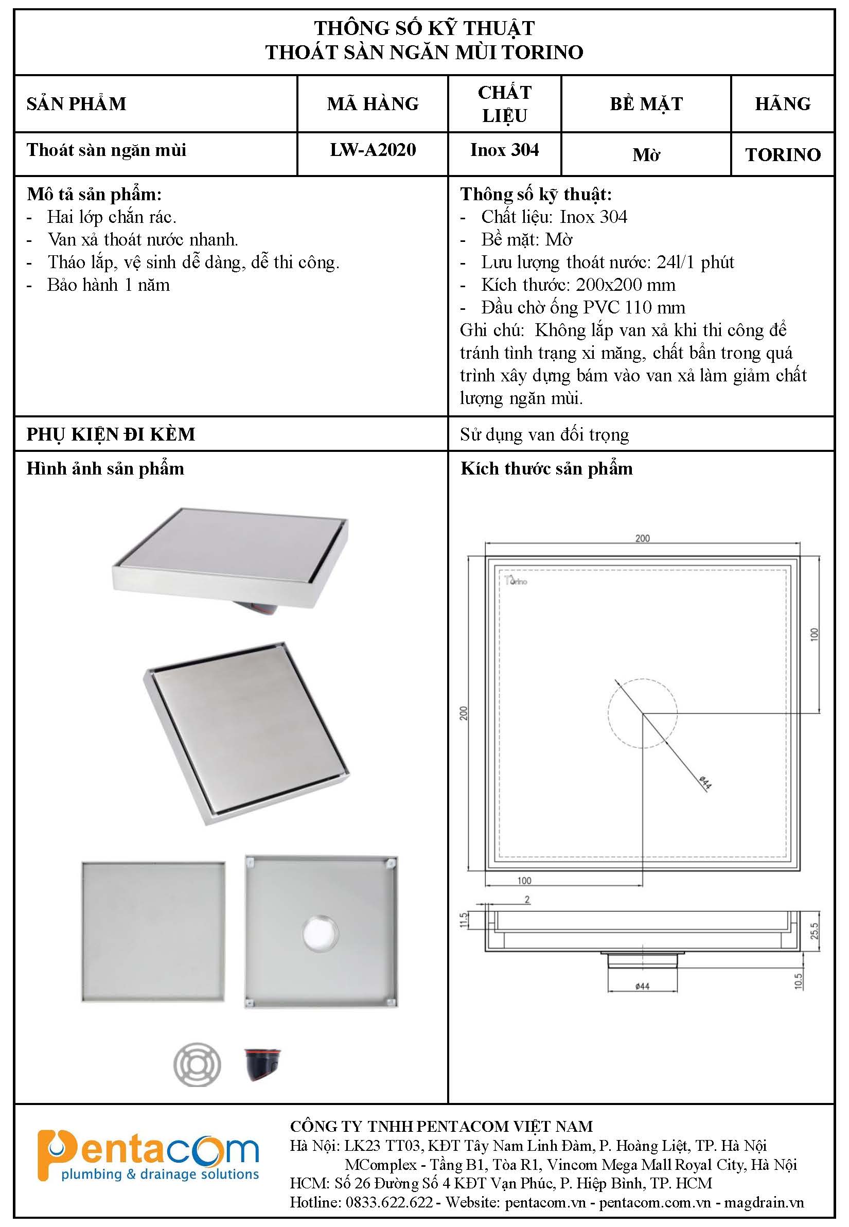 - Link tải Thông số kỹ thuật thoát sàn Torino