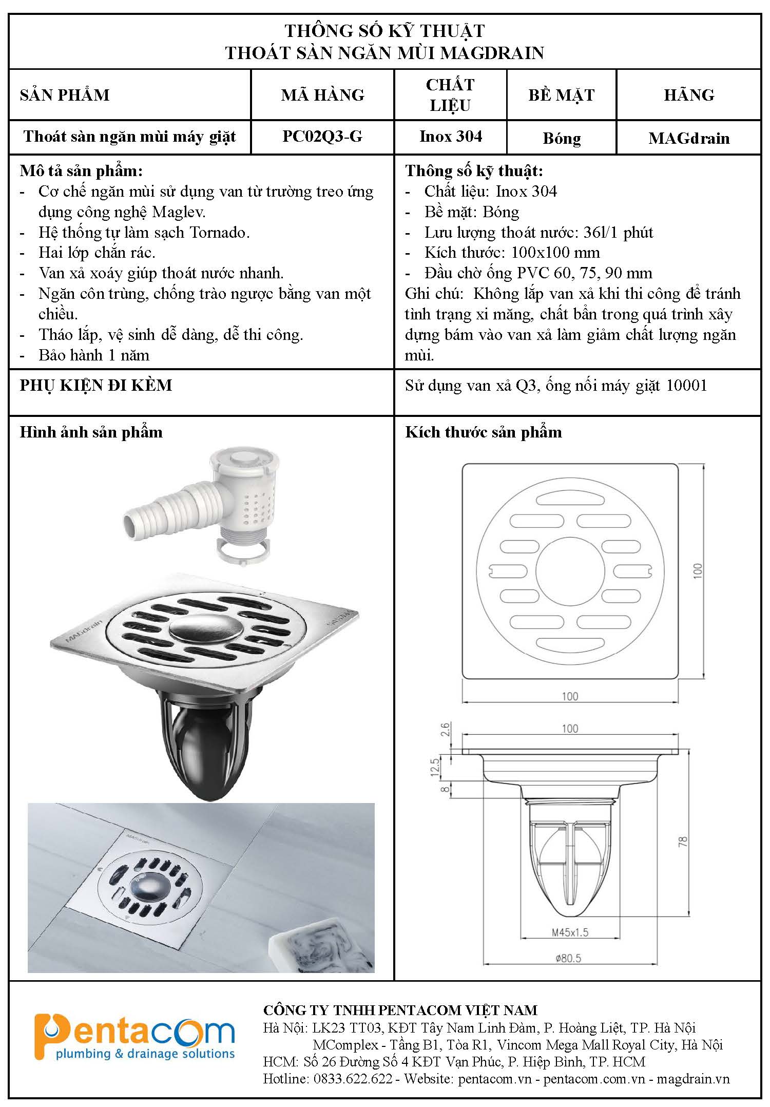 Ga thoát sàn ngăn mùi MAGdrain PC02Q3-G
