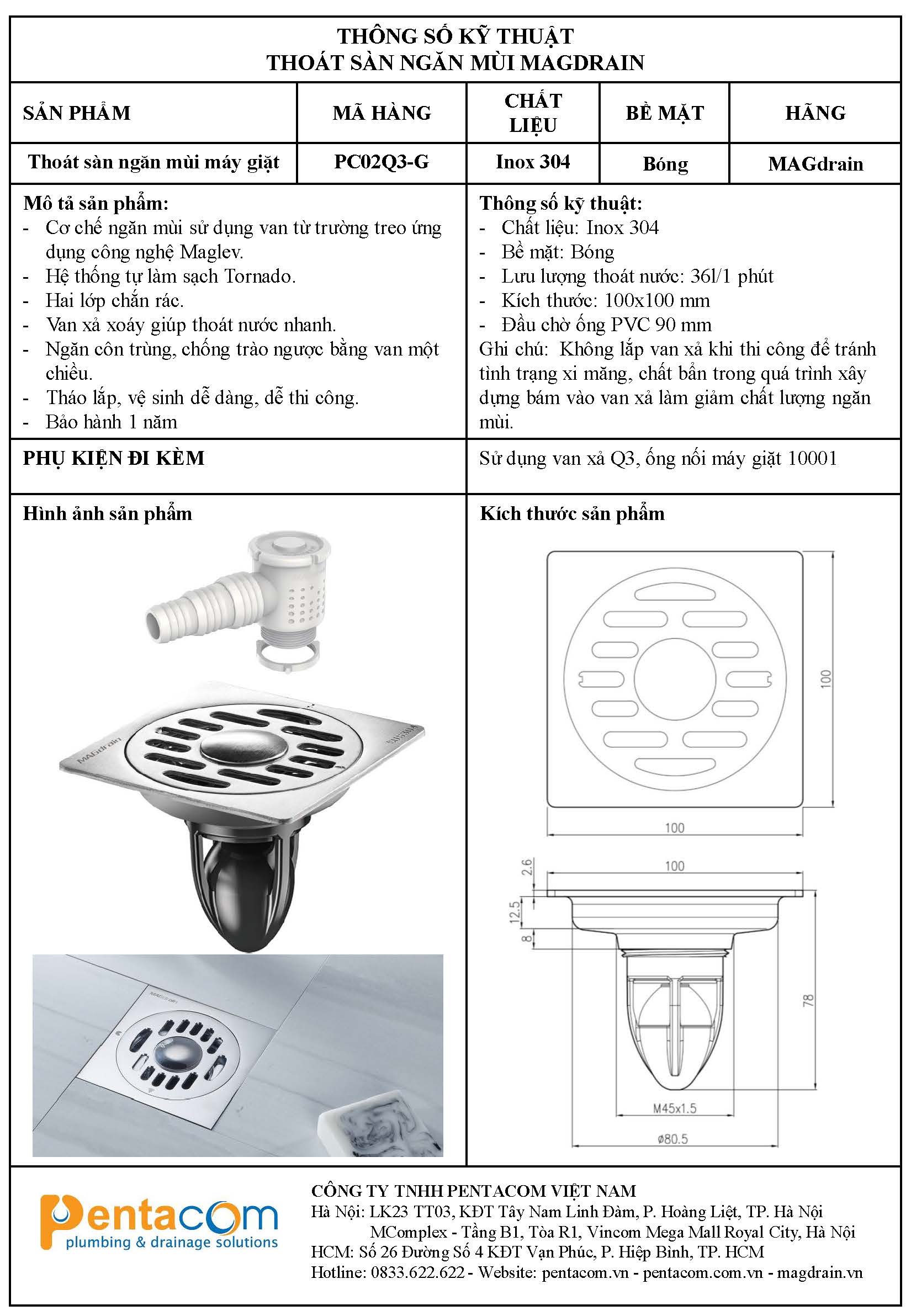 Mô tả ngắn: Thoát nước máy giặt kết hợp thoát sàn: